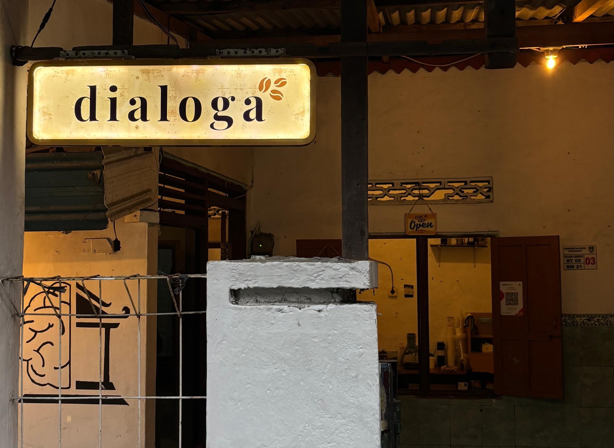 Malam mulai turun di sekitar kawasan kampus Universitas Sebelas Maret (UNS). Satu per satu lampu mulai menyala. Di sebuah bangunan yang menyerupai rumah tidak jauh dari kampus, aroma kopi tercium. Dialogakopi, warung kopi rintisan lima mahasiswa Sastra Arab, Fakultas Ilmu Budaya, angkatan 2024, baru saja membuka pintunya.
